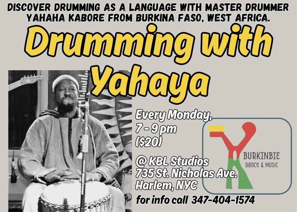Come join us for African Drum Class with Burkina Faso-born master musician Yahaya Kabore. Learn the dialogue of the drum lines of Dioula, Warba, Gourissie, Gourmatch, Salout, Wiré & Dagarie. You'll have the opportunity to learn different instruments that are provided in the class. Drop ins welcome, or Contact Us to confirm attendance, or to learn more about kids+parents classes on Saturdays.